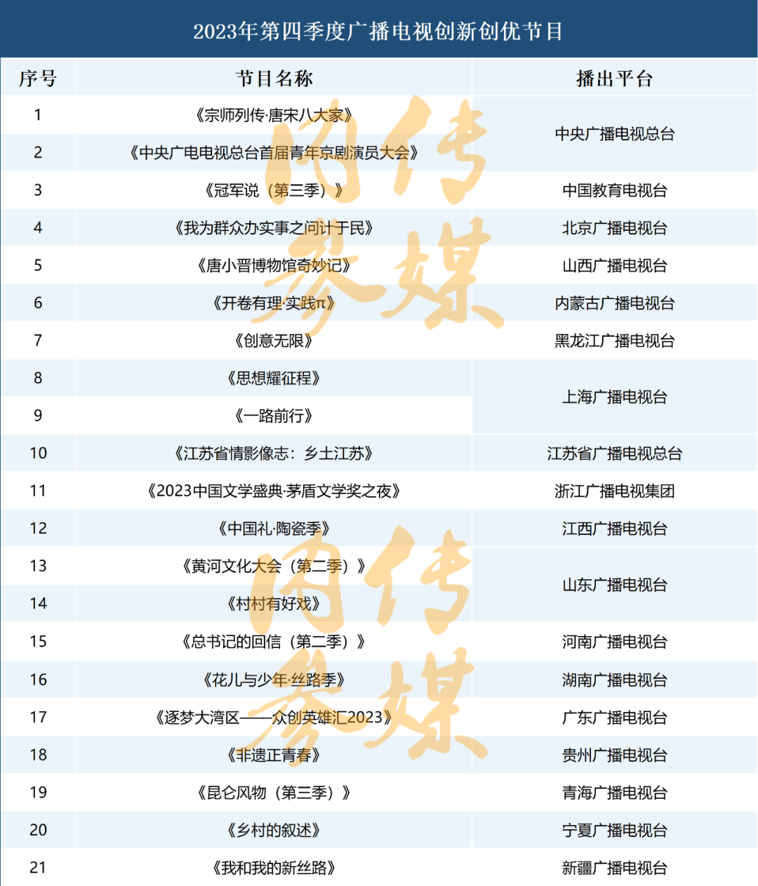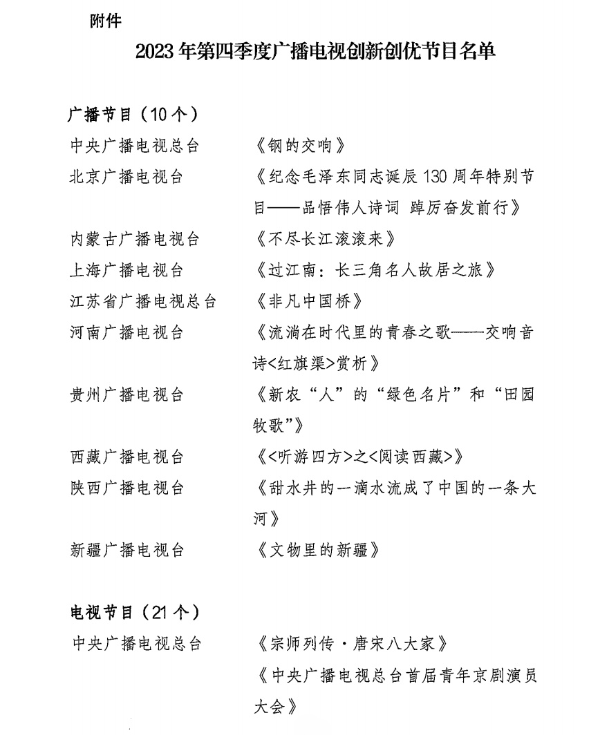 至此,总局2023全年四个季度的广播电视创新创优节目都已正式公布。