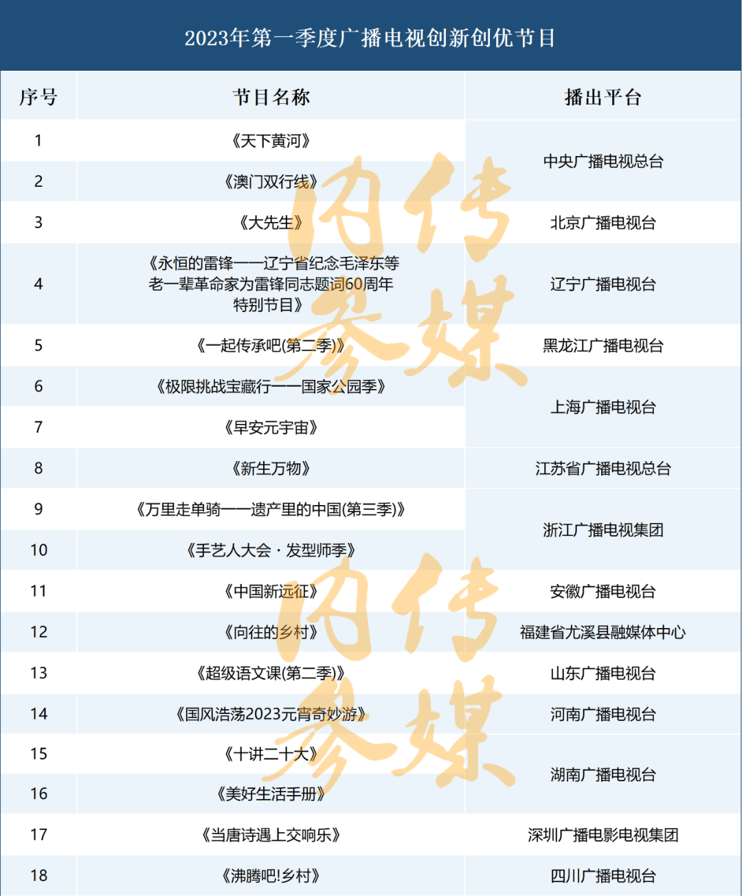 2023年第一季度广播电视创新创优节目名单