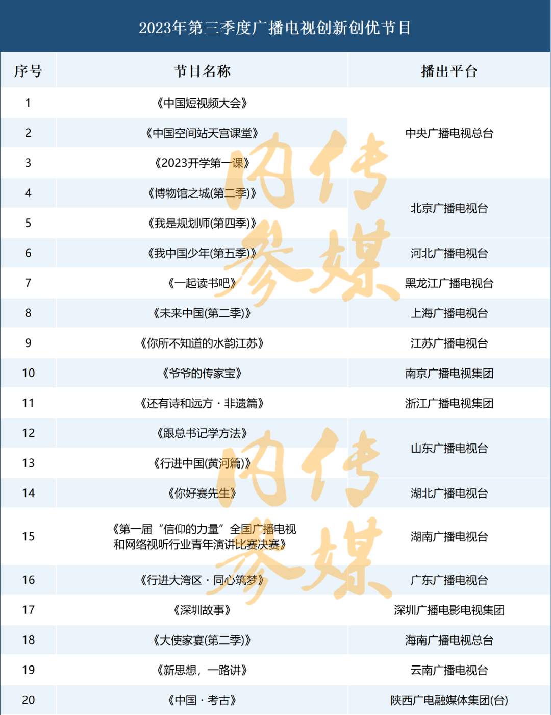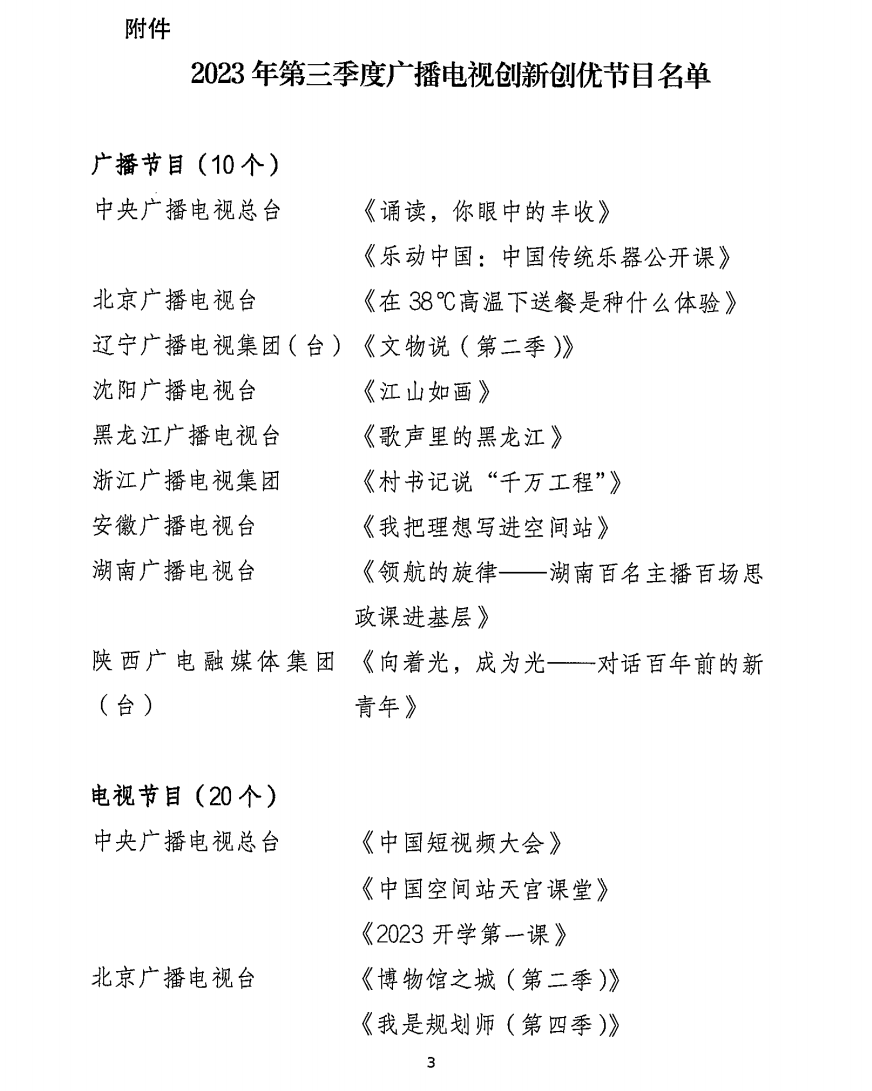 2023年第三季度广播电视创新创优节目名单