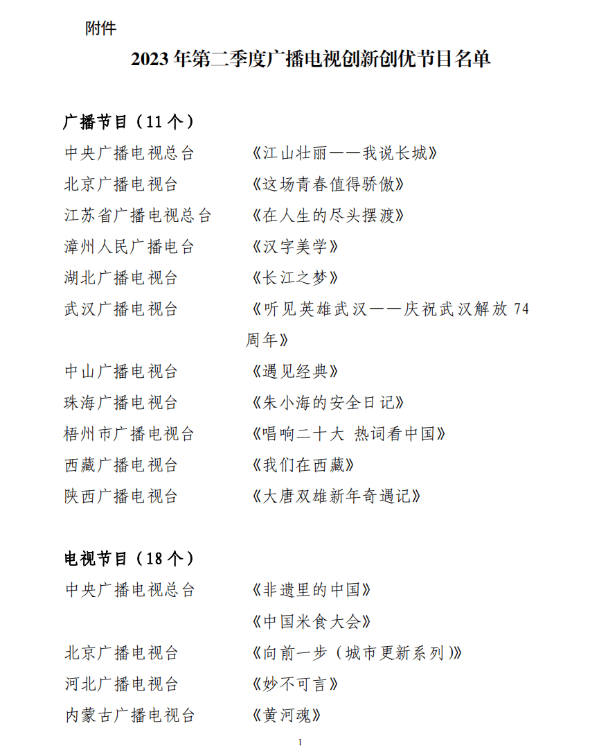 另附:2023年广播电视创新创优节目名单