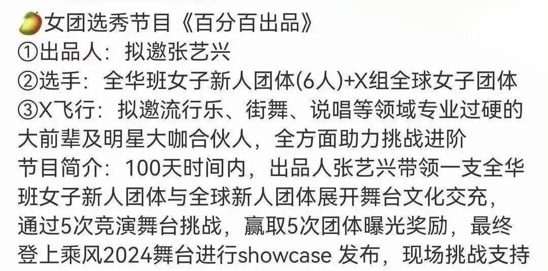 近期,张艺兴带领其旗下的见习生参加了芒果台的新综艺《百分百出品》。在这个节目中,他们以全华班女子新人团体的身份与全球的女子团体进行PK。