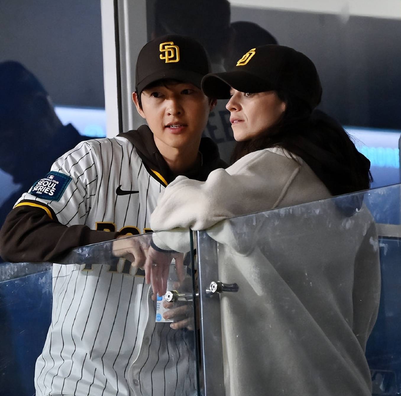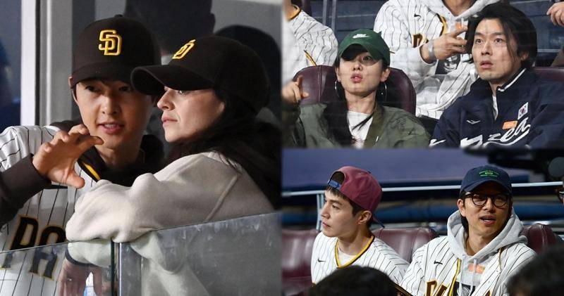 宋仲基夫妻看的是洛杉矶道奇队对圣地亚哥教士队的第二场比赛,两人被韩国媒体捕捉到同框画面,这是他们在孩子出生后,首次在韩国公开约会。