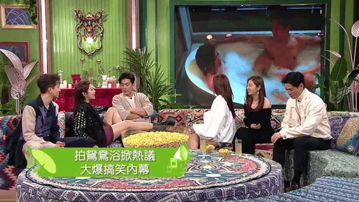 讲到黎诺懿与赖慰玲的鸳鸯戏水一幕,赖慰玲笑言自己的心理状态是由头惊到尾,并透露上身真空上阵、下身只穿一条短裤打底,皆因热水导致,赖慰玲说:我缠了好多胶纸,但我又说好怕冷,他们(工作人员)就帮我倒热水下去,这样一些胶纸就溶了,我就遮住(心口)咯。但因为我好怕走光,黎总就这样帮我打泡遮住!
