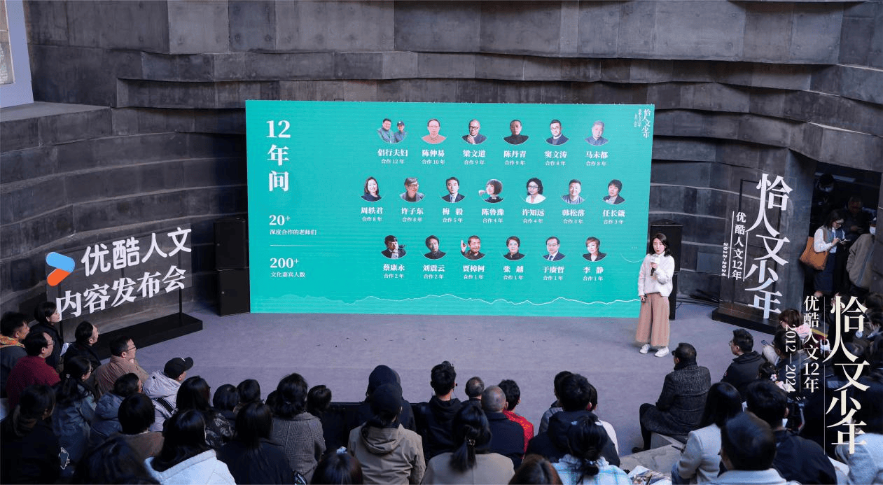 从2012年《晓说》第一季播出至今,优酷人文频道已成立12年。作为全网第一且唯一专注人文内容的网络视听平台,12年间,优酷相继出品了《圆桌派》《锵锵行天下》《观复嘟嘟》《第一人称复数》等一系列兼具品质和人文情怀的优质节目,豆瓣评分8分以上占比80%,9分以上10%;并与窦文涛、马未都、周轶君、许知远等文化名人密切合作,形成了全网极具影响力的当代文化人物阵地。优酷副总裁、泛文娱业务中心总经理朱雁春在发布会上表示,“以文化人,温暖众生”是优酷人文所坚持的理念,是12年来打造出多部口碑佳作的底层精神。优酷未来希望能和更多的文化人物站在一起,丰富人文宝库,让优质的人文内容滋养更多观众。