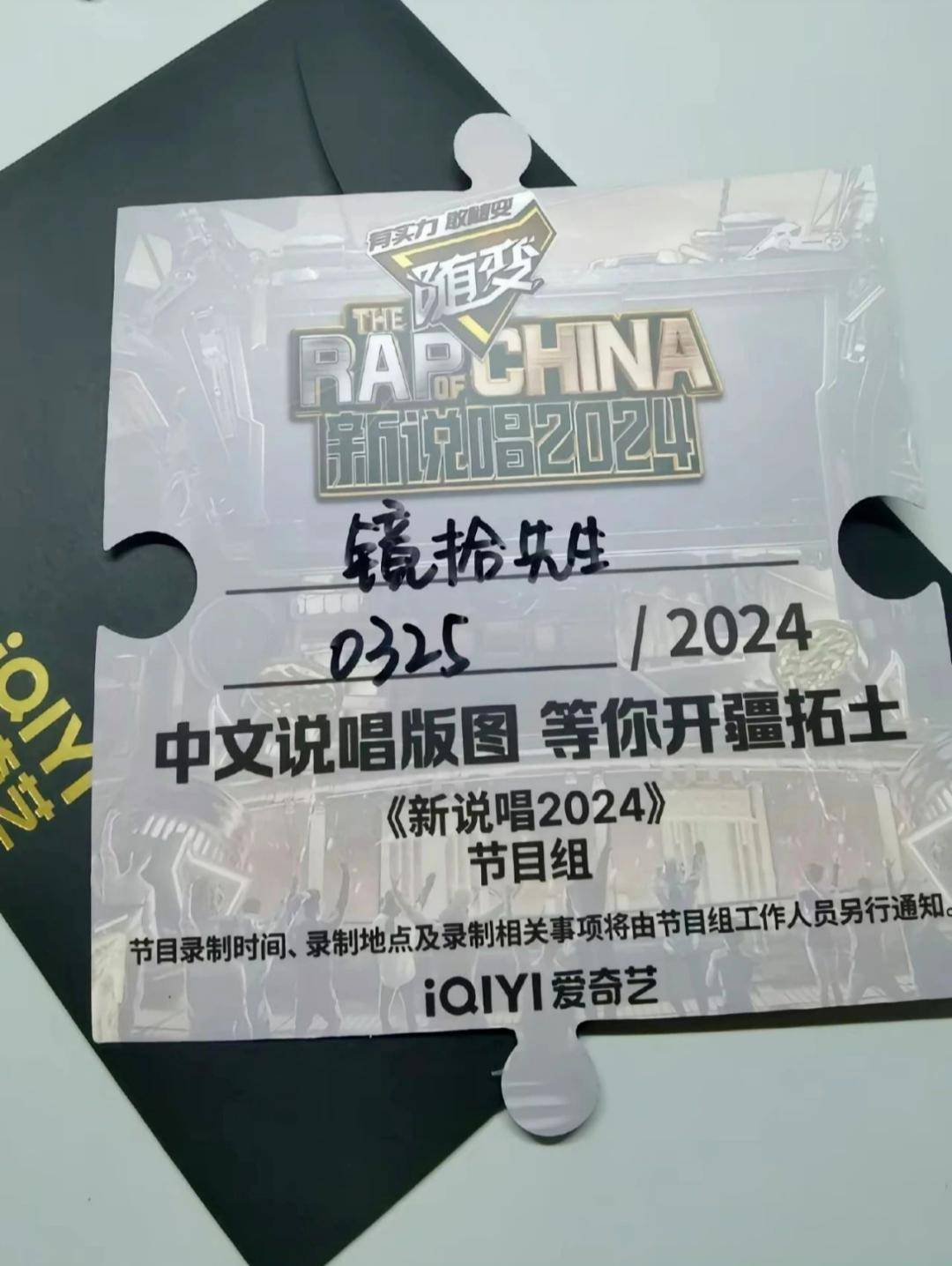今日,因“中文说唱该洗牌了”而火的镜拾先生也晒出了邀请函!