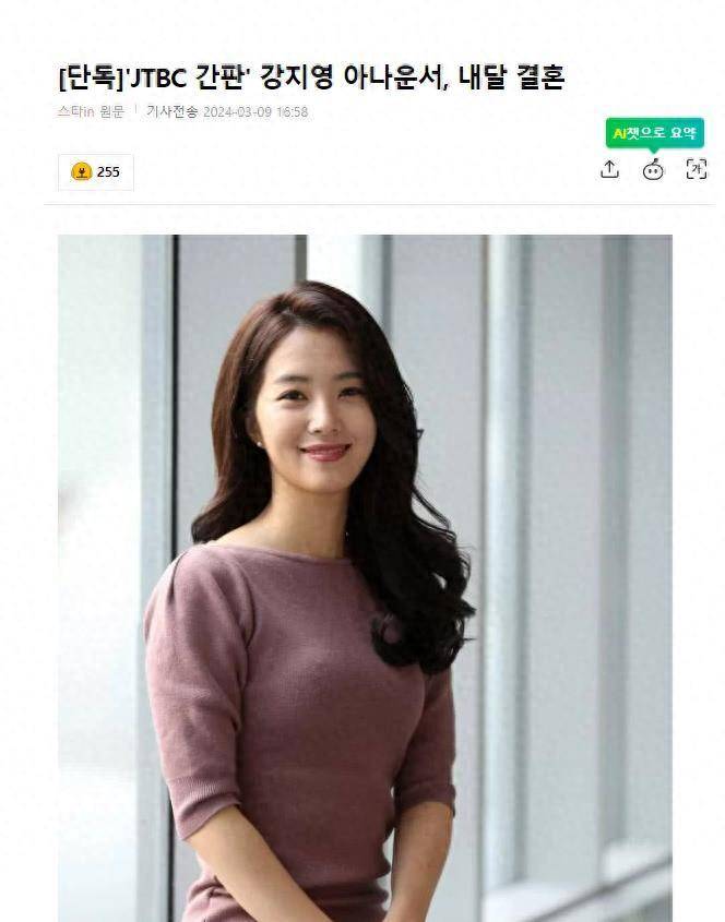 姜智英此前宣布退出JTBC《新闻室》,自2022年以来,她一直是该节目唯一的周末主播,随着姜智英宣布退出该节目,结婚传闻愈演愈烈。此前,在2月21日播出的综艺节目《You Quiz on the Block》中,主播姜智英透露了自己放弃美国会计师工作加入JTBC的经历,引起了韩国网友们的关注。