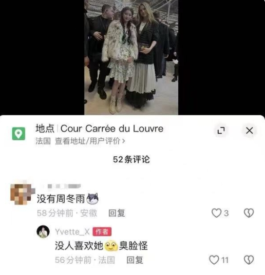 另外某博主在分享了自己的看秀照之后,还大胆内涵周冬雨是个臭脸怪。