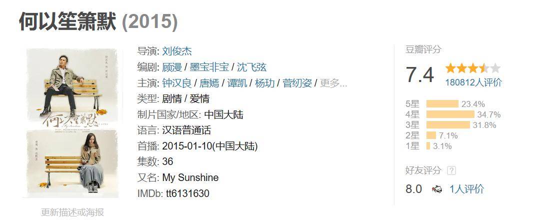 《何以笙箫默》是首部单日网络播放量突破三亿的电视剧,百度指数最高达320万,并且登上了韩国三大电视台之一的MBC,入选国家广播电视总局2015电视剧选集。