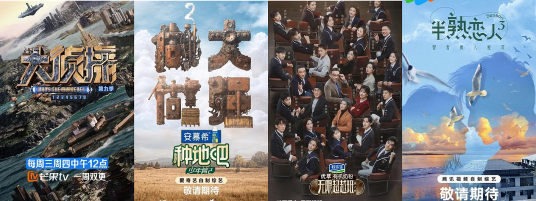爱优腾芒不约而同祭出的“大杀器”,显著拉高了市场期待。爱奇艺和优酷先后上线了《种地吧2》和《无限超越班2》,都是平台在去年研发的全新综艺IP。芒果TV和腾讯视频更押注成熟综N代:前者推出了《大侦探9》和《全员加速中·对战季》;后者于近日上线的《半熟恋人3》,则是这几年恋综市场的“新头牌”。