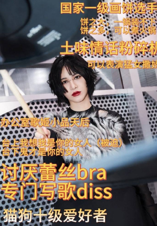什么“国家一级画饼选手”、“土味情话粉碎机”、“办公室歌姬小品天后”这些反差萌标签,她的粉丝为了吸引眼球,更是信手拈来。