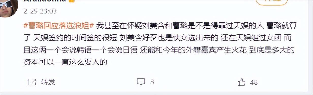 这一波操作下来,曹璐和刘美含没能圆梦,成为观众心中又一大遗憾,也让大家对节目印象直线下降。