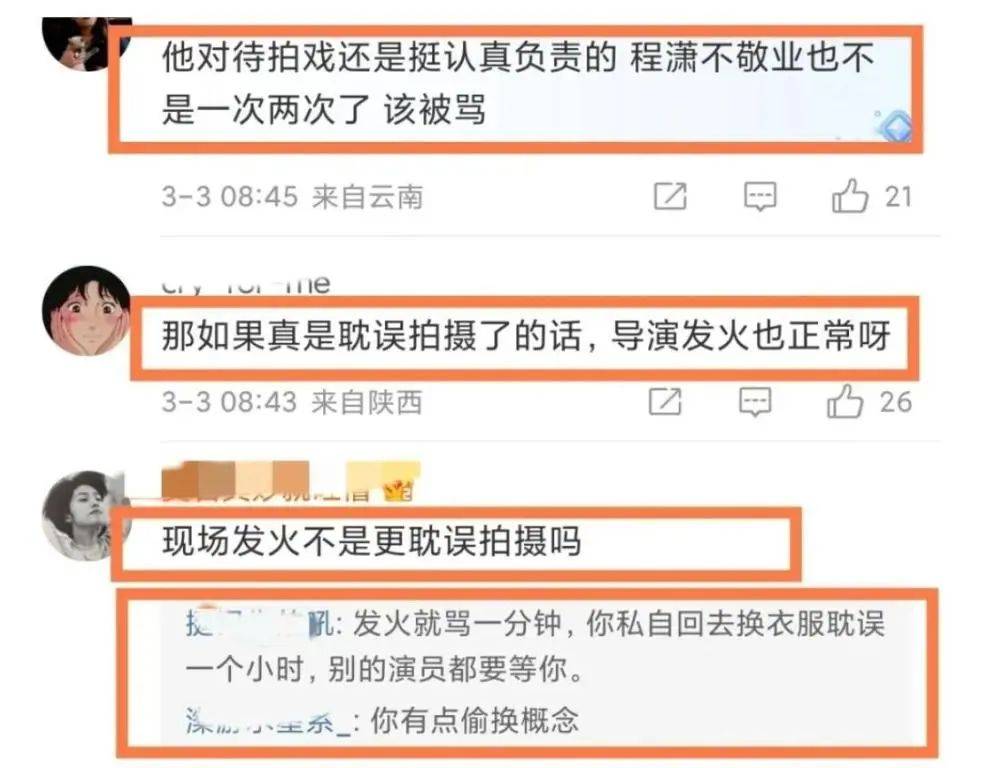 网友看到这段视频后,纷纷展开讨论,有人认为如果真是耽误拍摄了的话,导演发火也是正常。毕竟发火就骂一分钟,你仔细回去换衣服耽误一小时,别的演员都要等你!