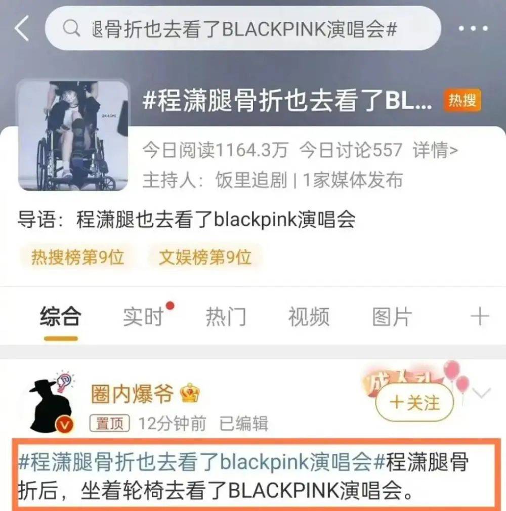 然后还整出了一个程潇腿骨折也去看了blackpink演唱会”的热搜词条,生怕人不知道一样,感觉她身残志坚用错了地方!