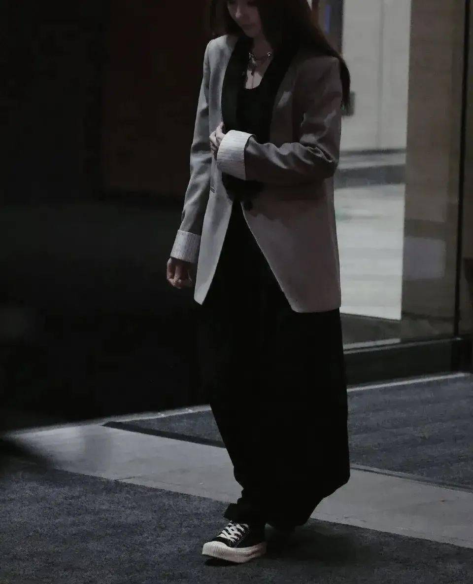 从路透的照片可以看到郭碧婷的状态非常好,只见她身穿灰色宽松外套,搭配黑色长裙,长发飘飘,走起路来轻快且随性。