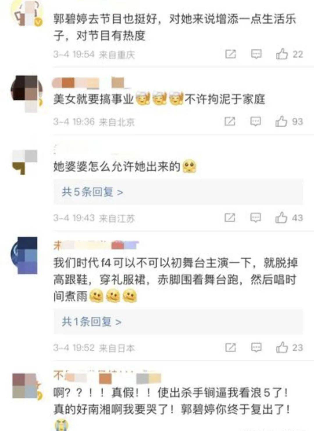 从评论中可见大家对于郭碧婷重新回归舞台的期待和支持。