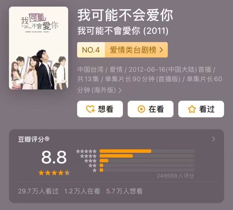 很多观众将《我可能不会爱你》视为台偶最后的辉煌。的确,2010年前后,质量上不再具备竞争力的台偶,从内地黯淡离场。