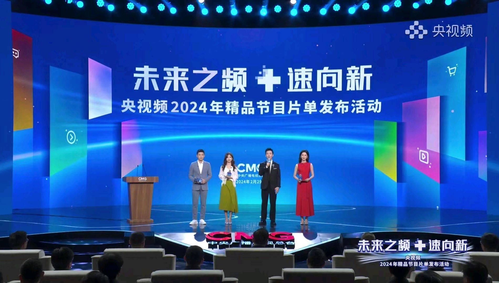 值得注意的是,总台央视频2024年精品节目片单发会的主持人是一个全新的阵容,由张韬、王冰冰、张慧鑫、龚韵熹组成。4位主持人只有王冰冰是总台央视频视听新媒体中心的,张韬是新闻中心的,而张慧鑫和龚韵熹是两位全新的面孔,2023年央视主持人大赛的优秀选手,其中张慧鑫是银奖获奖者。