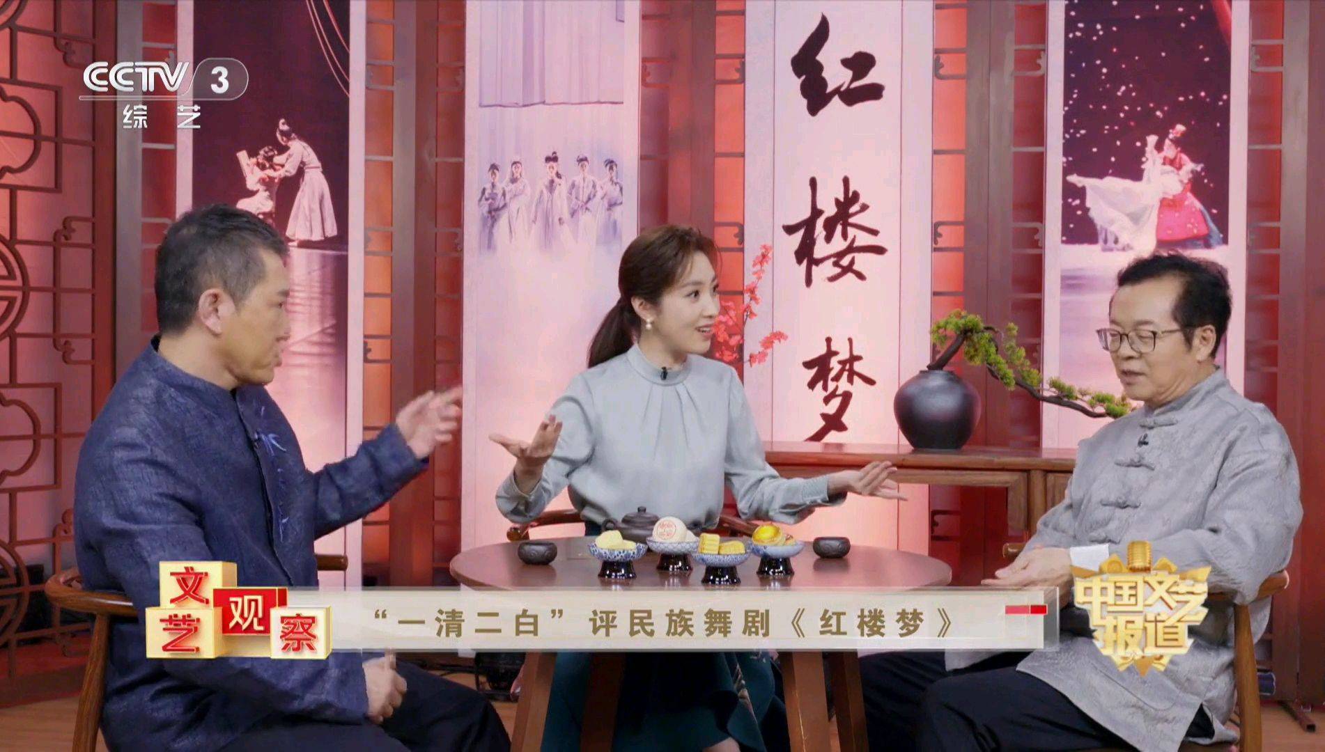 近日,央视综艺频道《中国文艺报道》节目,推出了一期针对江苏大剧院排演的民族舞剧《红楼梦》的文艺评论节目。担任文艺观察员的是何卿,嘉宾是中国舞蹈家协会主席冯双白和知名学者张一清,他俩组成“一清二白”组合。20分钟时间,3人主要围绕该舞剧排演的难度、与文学原著的细微差别,以及为什么能火爆出圈等问题展开了讨论。