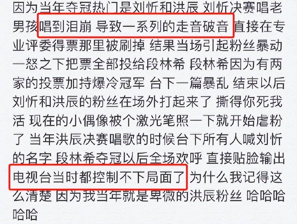 这么多年过了,分别以刘忻和洪辰为代表的两派粉丝,还能分分钟掐起来,说一句内娱史上最癫选秀没人有意见吧。