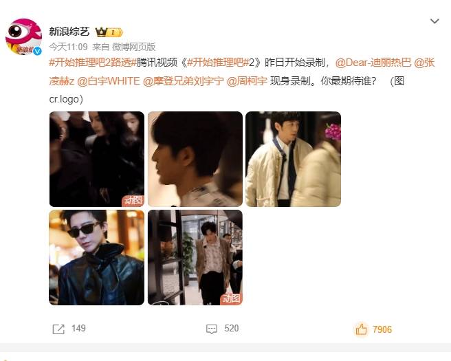 2月29日,《开始推理吧》第二季正式启动录制,与之前网传的名单一样,本季除了有刘宇宁、周柯宇以及白宇三位原班人马回归外,节目组还邀请了两位明星全新加盟。其中张凌赫作为时下最火的小生,他的加盟无疑会给节目带来更多的观众以及关注度。
