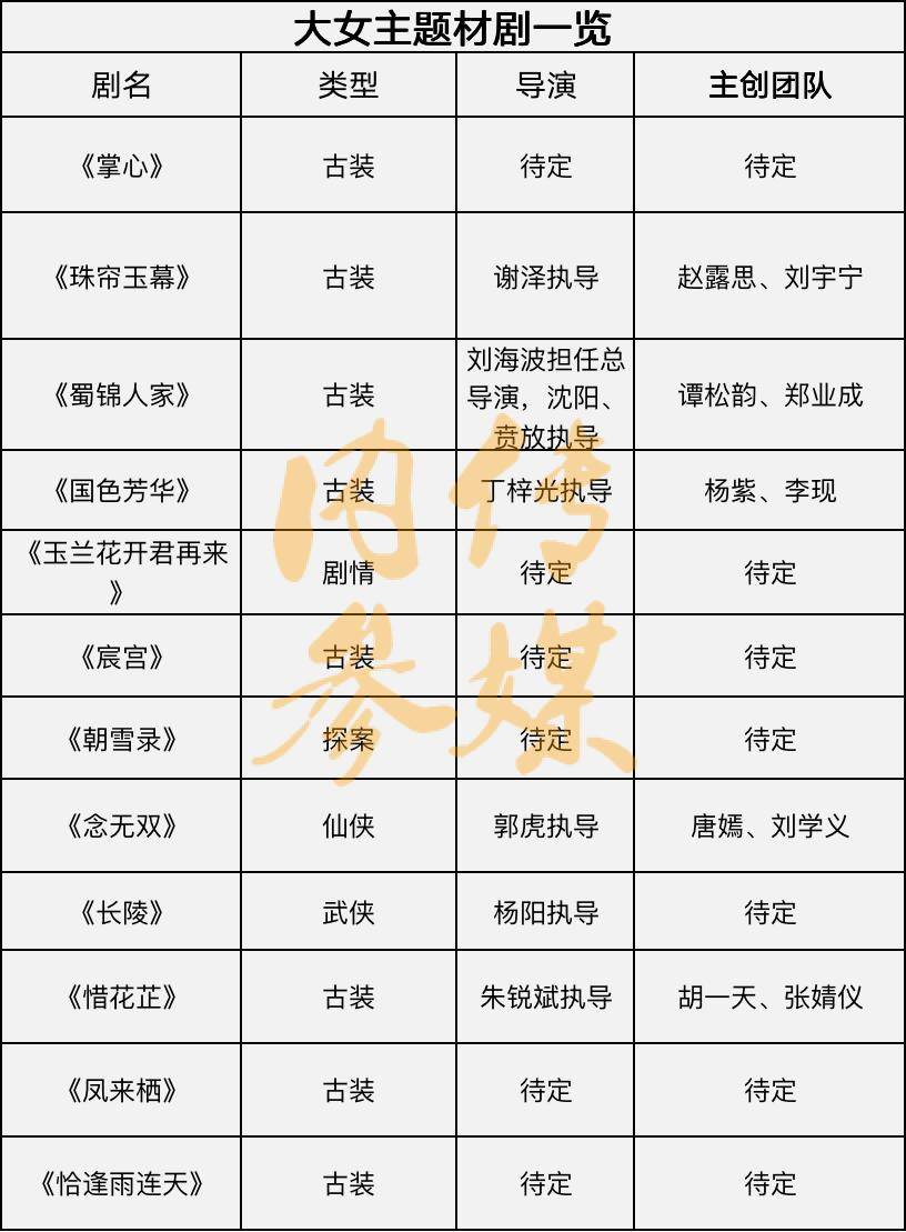 以下是CMNC—传媒大眼梳理汇总的待播大女主剧信息: