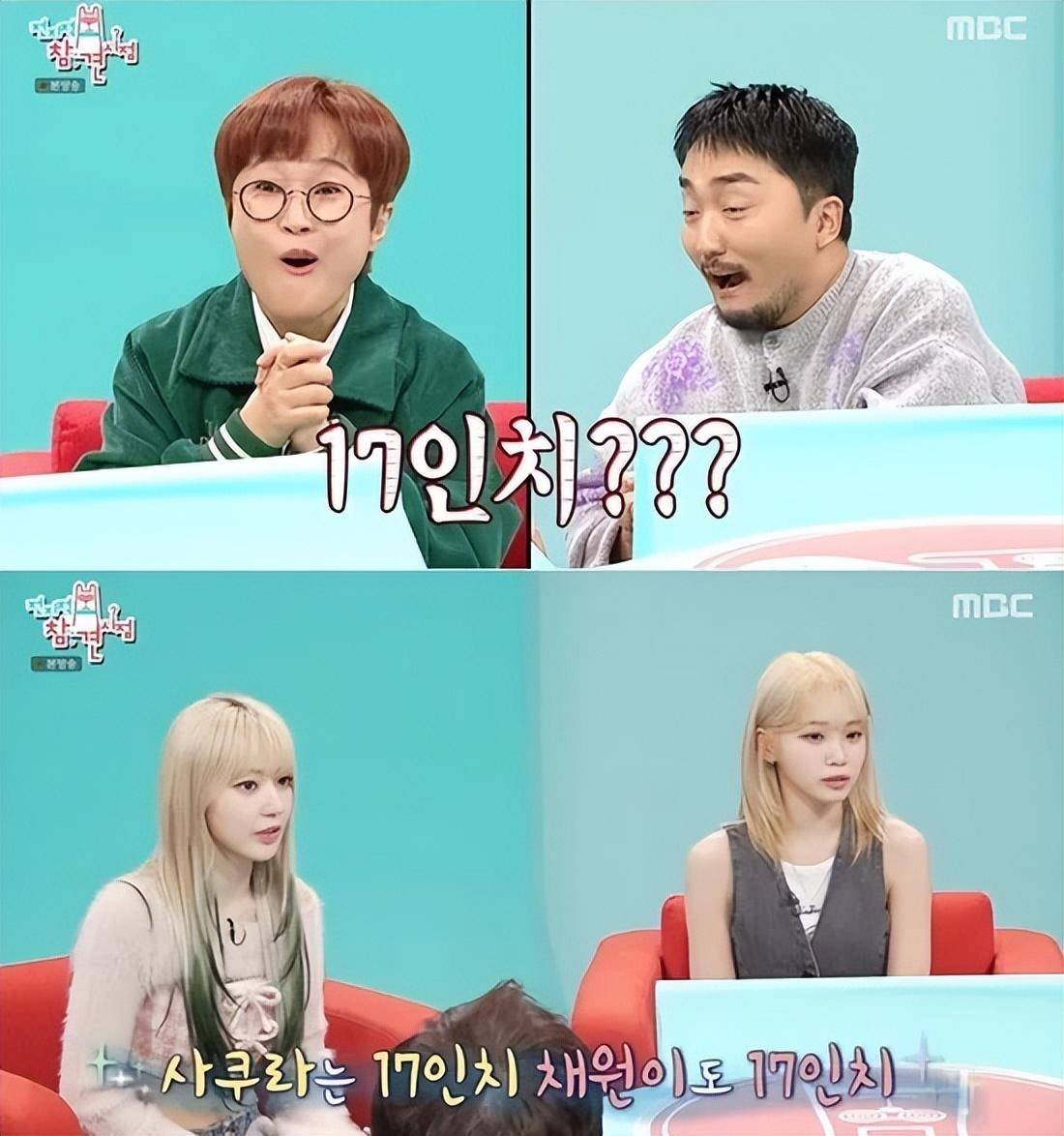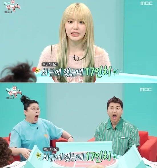 金采源和宫胁咲良想了想,说道17英寸,看到节目组成员们惊讶地反应,金采源解释说,起来她们没有吃东西就测量了,结果很瘦。搞笑艺人Mirage嘟囔着笑,说这与她吃不吃无关,只要她腰围17 英寸就可以了,洪贤熙还开玩笑说,Mirage腰围有47英寸长。金采源和宫胁咲良在节目中声称自己的腰围为17英寸,引发了韩国网友们的批评和热议。