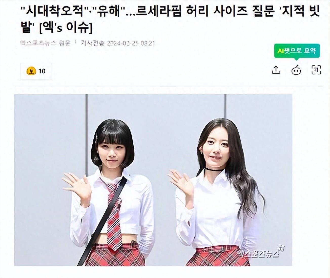 韩国知名女星,女团LE SSERAFIM成员金采源和宫胁咲良,在综艺节目中公开了自己的腰围,引发了韩国网友们的批评和热议。