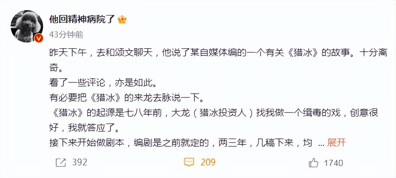 原标题:导演长文回应《猎冰》争议:否认收华为红包,穷到住100元旅馆
