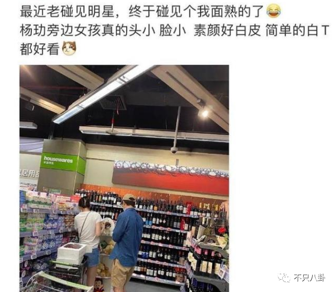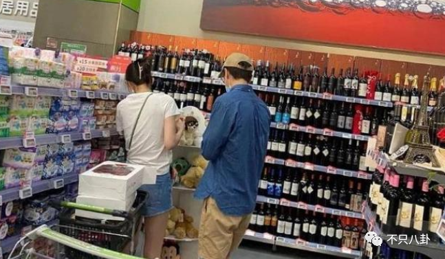 2021年6月初,杨玏被拍到和一位身材高挑的妙龄美女一起逛超市↓