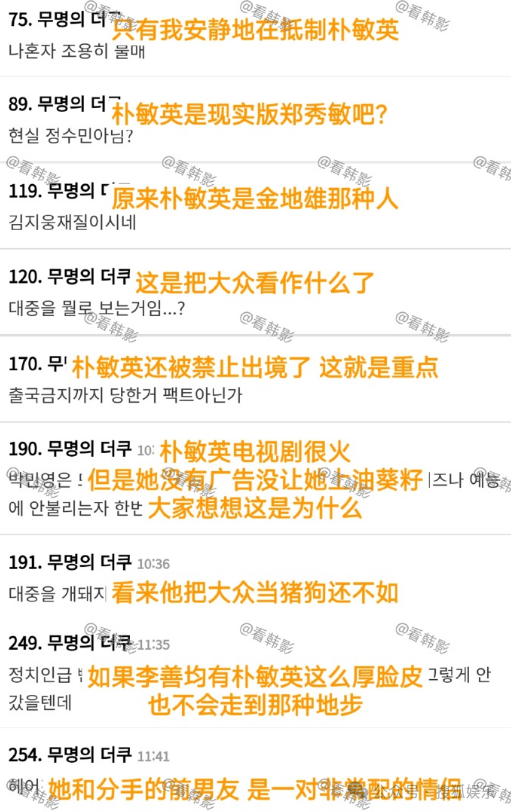 很多韩国网民吐槽朴敏英在撒谎,实际并未跟诈骗犯前任撇清关系,甚至私下有很多金钱往来,一直做表面文章糊弄大众。