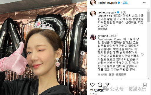 朴敏英ins发文疑似回应:“我厌倦了这一切,但是我相信真心一定会相通的,我现在有了支持我的粉丝,不用担心我。