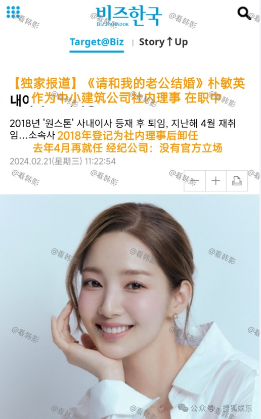 他们称朴敏英作为中小建筑公司社内理事在职中!这个公司和他的诈骗犯前男友的公司也有关联......