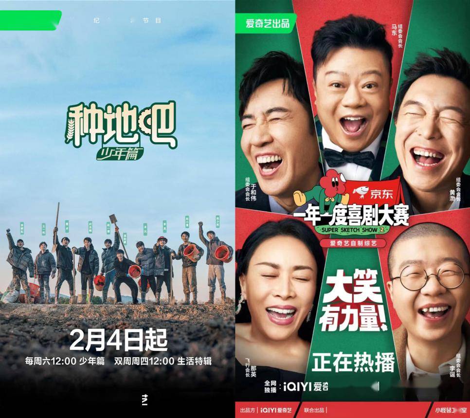 爱奇艺数据研究中心数据显示,春节7天, 爱奇艺自制慢综艺《种地吧》、东方卫视《极限挑战宝藏行·和美乡村季》、浙江卫视《奔跑吧生态篇》分别登上综艺热度值榜单第4、第5和第9名。