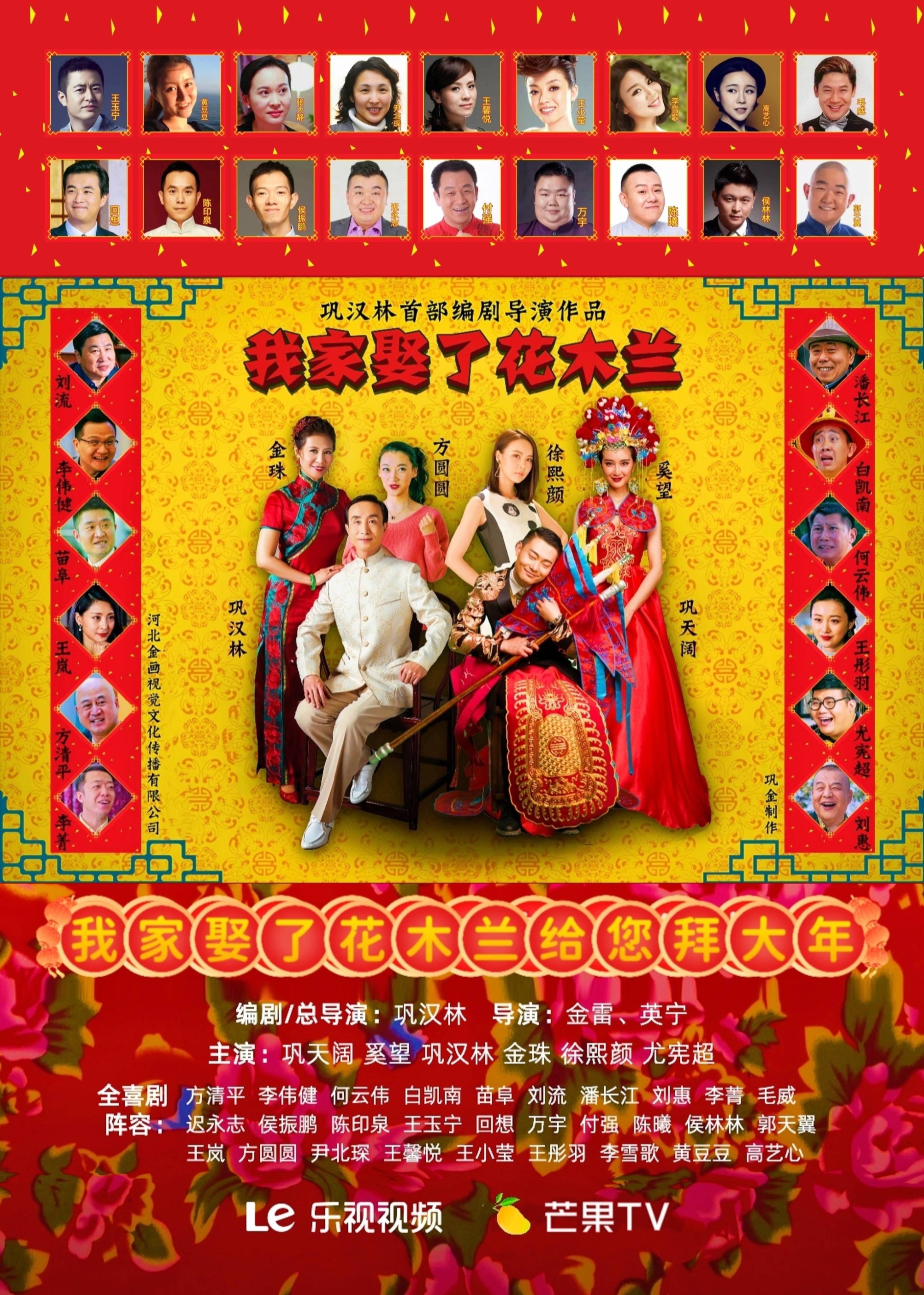 《我家娶了花木兰》由巩汉林、金雷、英宁执导,巩天阔、奚望、巩汉林、金珠、徐熙颜、尤宪超主演,方清平 、李伟建、白凯南、苗阜、刘流、刘惠、潘长江、李菁、毛威、何云伟、迟永志 、侯振鹏、陈印泉、王玉宁、回想、万宇、付强、陈曦、侯林林、郭天翼、王岚、方圆圆、尹北琛、王馨悦、王小莹、李雪歌、黄豆豆、高艺心等21位相声演员和多位喜剧演员参演。