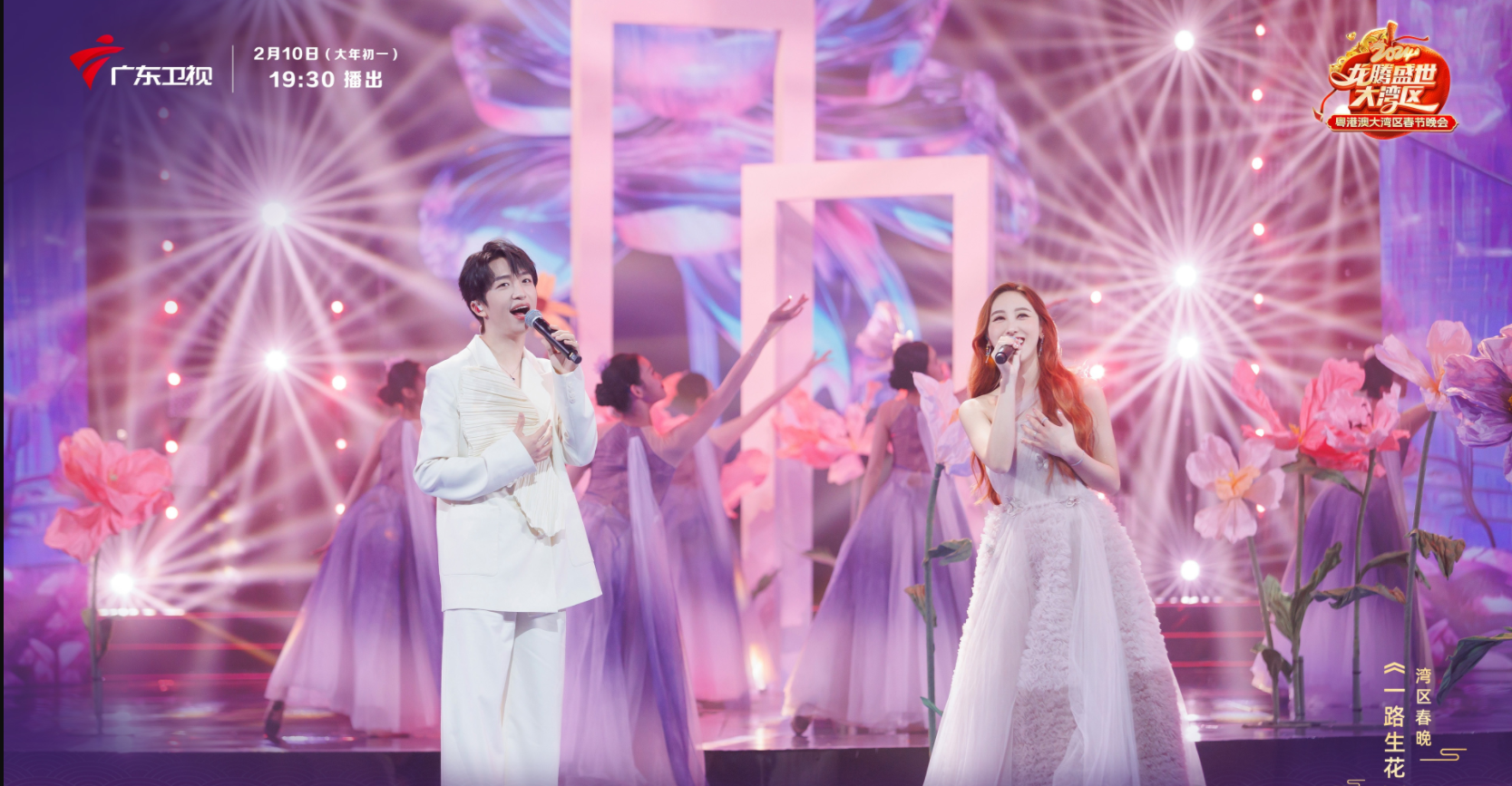 湾区春晚的结尾群星齐唱《大湾》《国家》,祝愿祖国繁荣昌盛,广东春晚完美画上句号。
