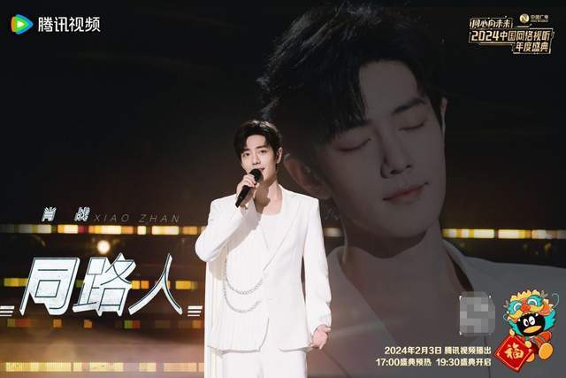 2024年2月3日,由国家广播电视总局指导,中国网络视听节目服务协会、中国电视艺术委员会主办,学习强国、人民网、新华网、爱奇艺、优酷、腾讯视频、抖音、快手、微博等20家重点网络视听平台共同承办的《同心向未来——2024中国网络视听年度盛典》播出。肖战作为领衔讲述人,讲述第一个篇章《同梦·不负韶华》并在舞台演唱正能量歌曲《同路人》,引发巨大关注。“我们有个性,更有担当,我们渴望用自己的所知所学,在各自热爱的领域,为大众创造哪怕一点点价值”,以歌声为引,以网络为媒,站在官方重量级的舞台上,肖战用坚定的声音向世界发出倡议,用实际行动为“网络变成璀璨、和谐又有爱的宇宙”尽自己最大的努力。