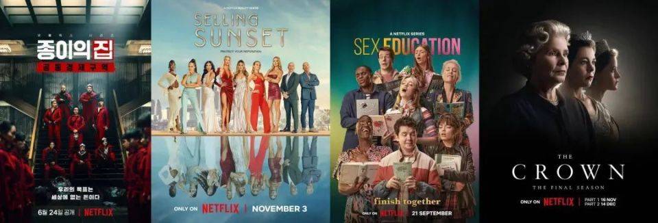 在第四季度,Netflix在原创和授权两条战线上双头并进,逐渐形成有机互补的庞大影视矩阵。在剧集方面,Netflix延续对于自家已有品牌的大笔投资,前述的《柏林》便是大热西班牙语剧集《纸钞屋》的前传,而《鱿鱼游戏:真人挑战赛》则承袭自Netflix史上最成功的电视剧。在该季上线的节目还有《维珍河》第五季、《日落家园》第七季以及双双迎来大结局的《性爱自修室》和《王冠》,这些剧集或综艺都创下千万次以上的观看数。