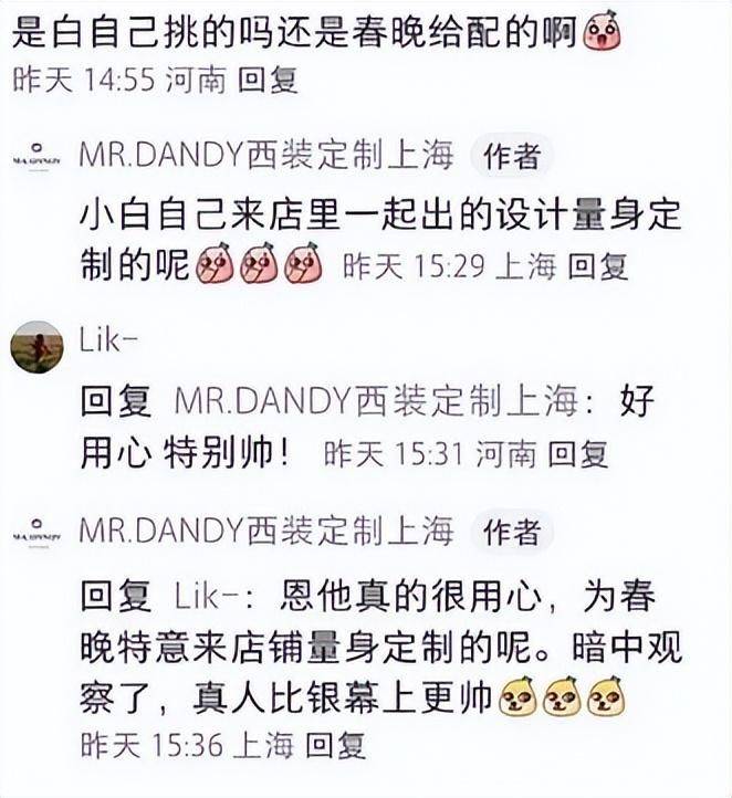 在衣服问题上,白敬亭的粉丝最初声称黑色衣服是节目组安排的,但随后被揭露是白敬亭自己定制的。而且,为白敬亭设计白色衣服的设计师在春晚前两小时还在为白敬亭和自己设计的衣服做宣传,似乎对白敬亭换衣毫不知情。
