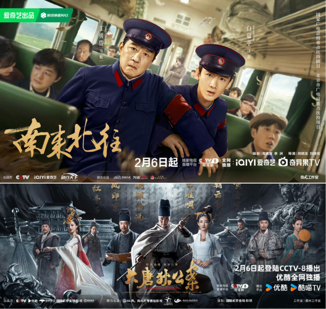 它们分别是在爱奇艺上线的年代大剧《南来北往》和在优酷网络独播的古装探案悬疑剧《大唐狄公案》。巧合的是,二者的电视端播出平台均为央视八套,承包了电视剧频道的黄金档和次黄金档。