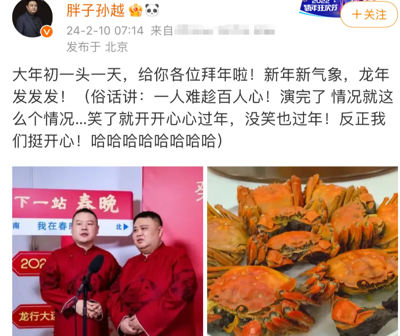 春晚上网友的差评,甚至让孙越出面回应,一人难趁百人心,反正演完了就这么个情况,开心也要过年,不开心也要过年,反正我们挺开心的。