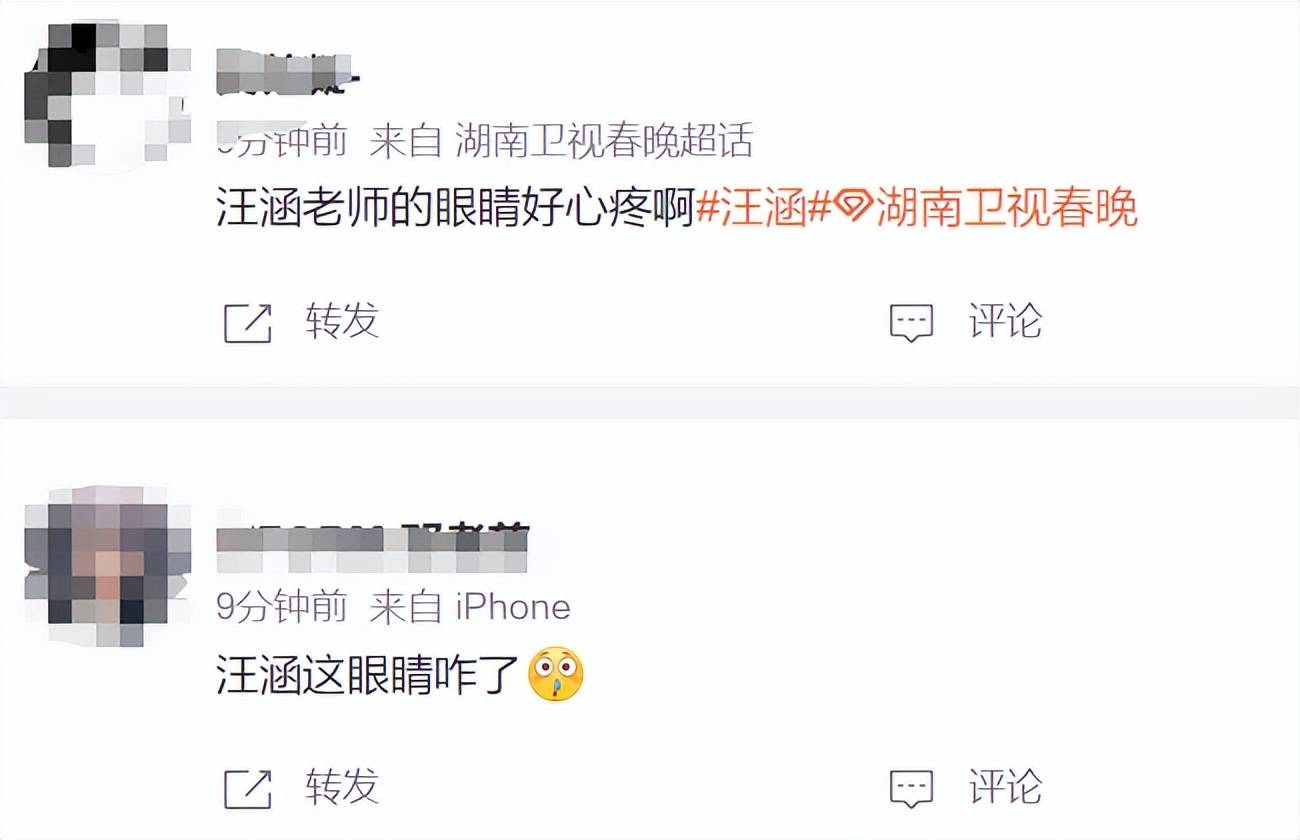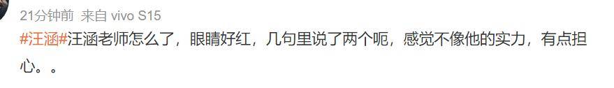 镜头拉近之后,观众也发现汪涵的眼睛似乎有些太红了,起初还以为是眼镜反光,后来发现是汪涵的眼球本身就红,眼底的血丝都聚在一起,像眼下出血了一样。