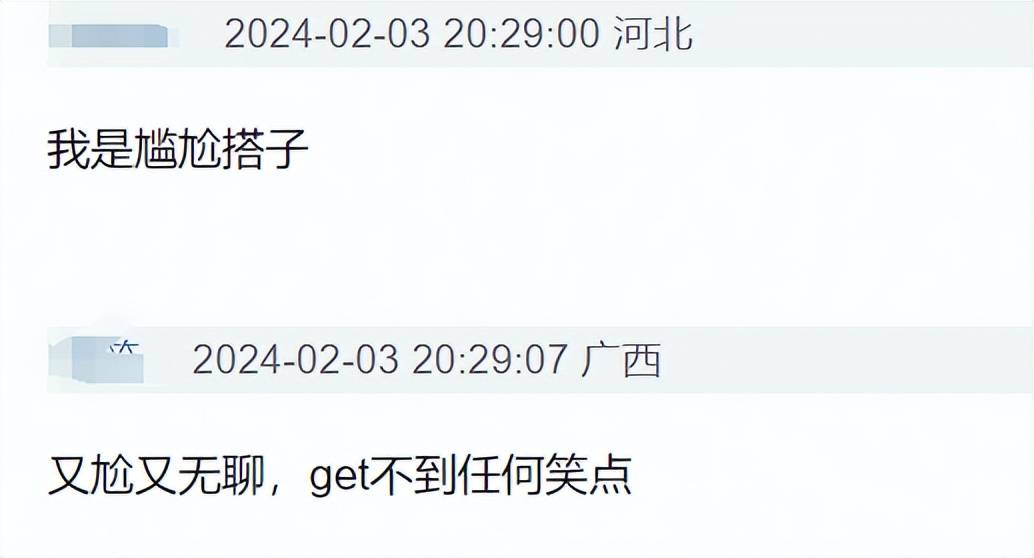一场小品看下来,就记住了两个字“搭子”,也算是点题了。有网友吐槽这小品剧本写的像凑不出字数的命题作文,为了扣题,全篇都是各种“搭子”。不仅不搞笑,还充满尴尬,观众看完都不知道说些什么好了,get不到任何笑点。