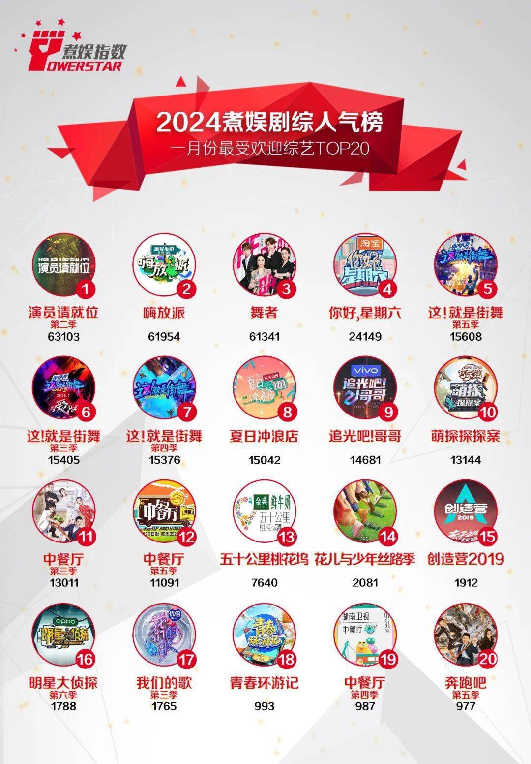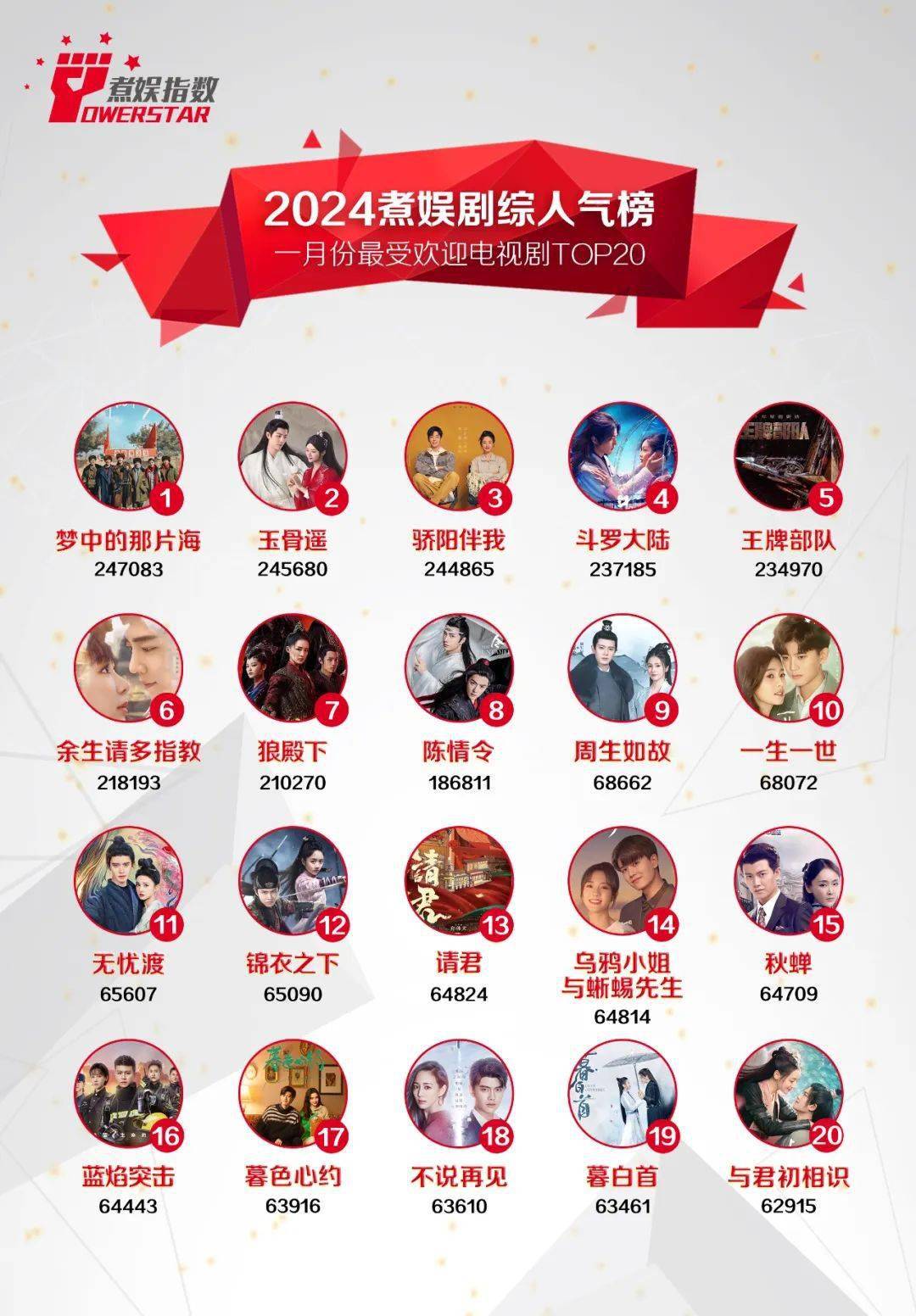 原标题:2024煮娱剧综人气榜1月份最受欢迎TOP20