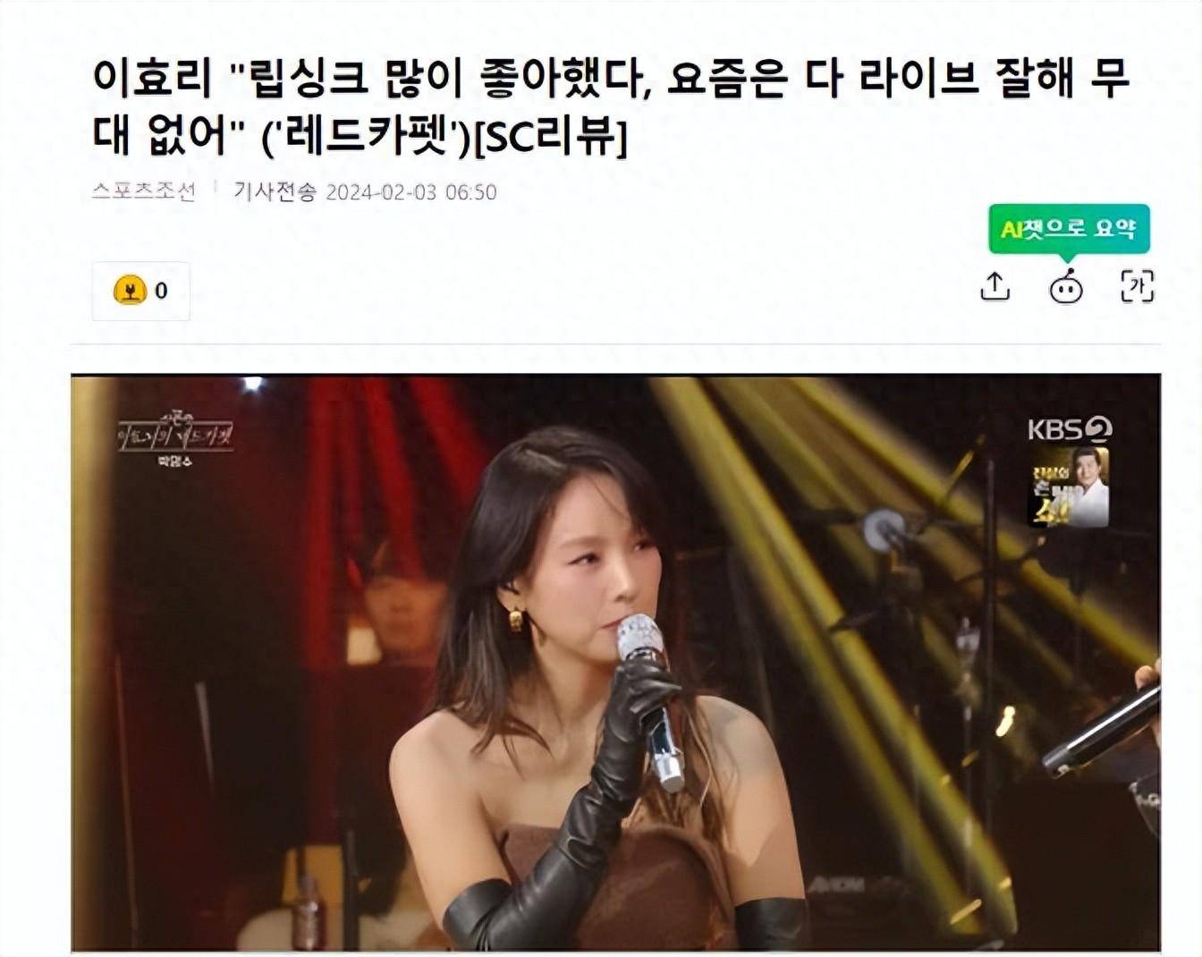 韩国知名女星,歌手李孝利坦白说自己喜欢在舞台上对口型。2月3日,有韩国媒体报道,朴明秀作为嘉宾出演了2日播出的综艺节目《李孝利的红地毯》。