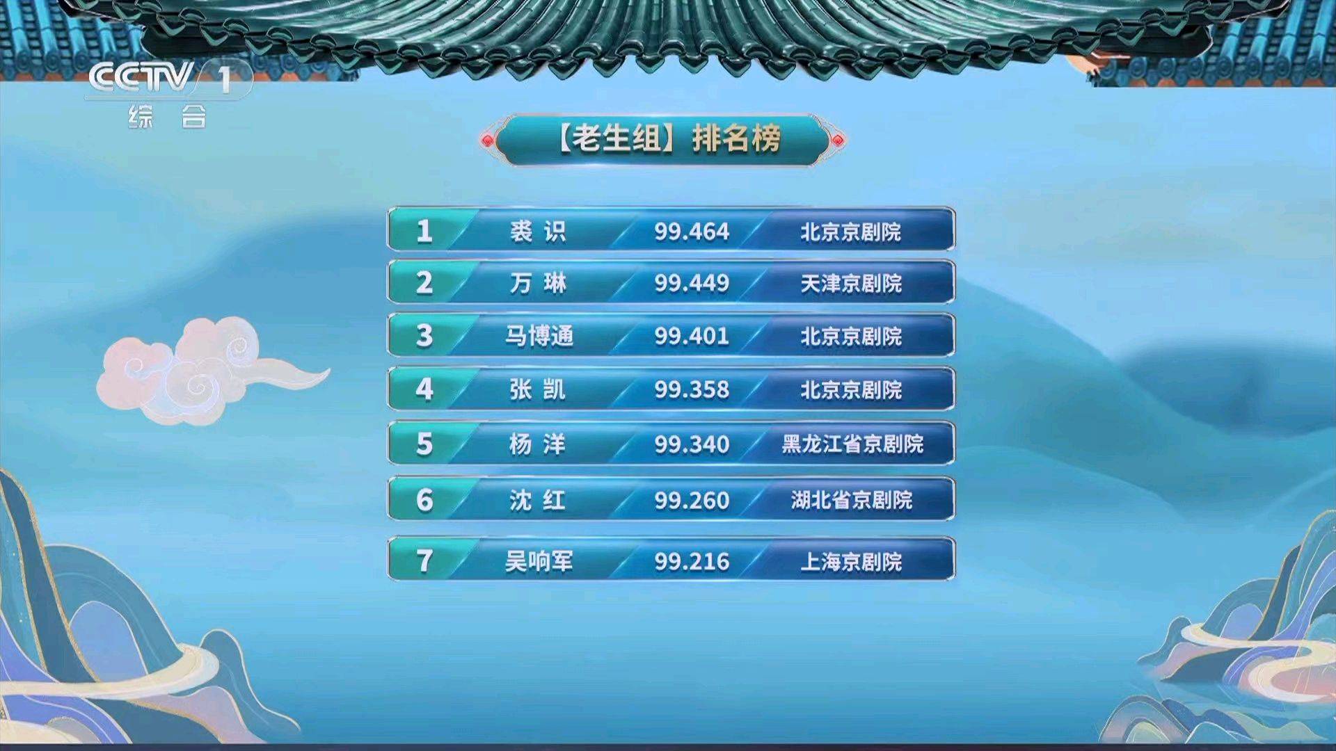 1、裘识 99.464 天津京剧院