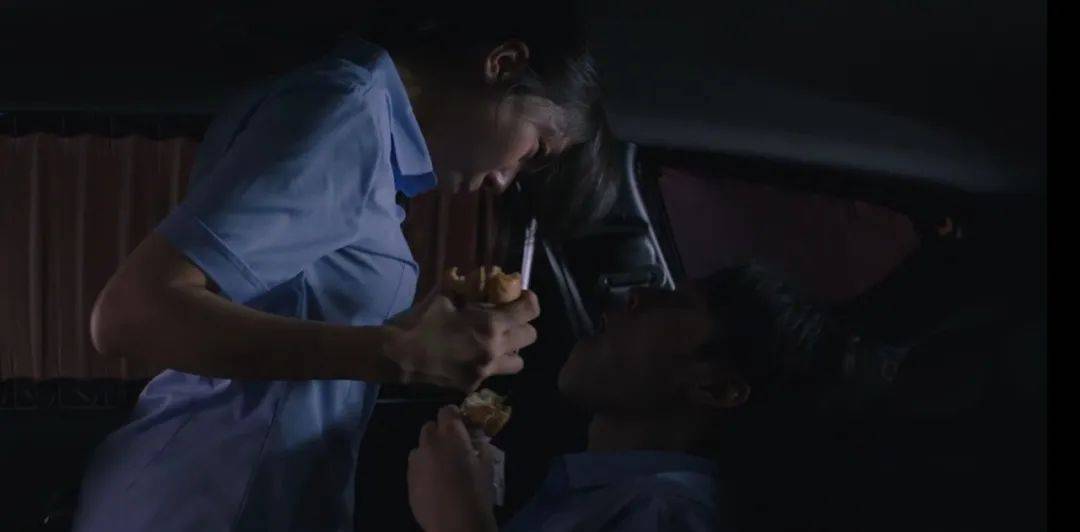 第一对CP,两人都是银行职员,利用午餐时间在天台停车场偷情。“边吃汉堡边偷腥边掐表”这一啼笑皆非的场景,直指工作对人性的压榨和异化。车震情节看得人可笑又可怜,你们俩真是饿了!