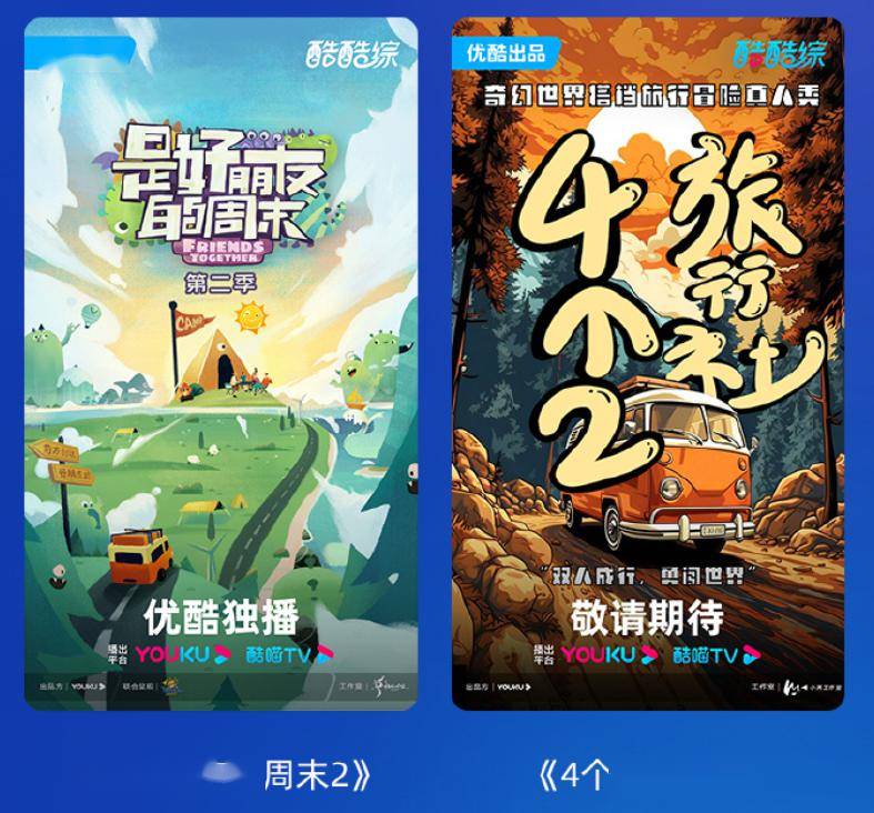 在优酷发布的综艺片单中,旅综的含量虽然不高,但各有特点。《是好朋友的周末2》续作来袭,由艺人嘉宾自行策划与好友的短途旅行,是喜闻乐见的“熟人局”;《盲盒旅行局》主打“大富翁”式的随性旅游,花式玩转city walk;《4个2旅行社》主邀四组双人嘉宾,意在打造一场双人成行的奇妙旅途。