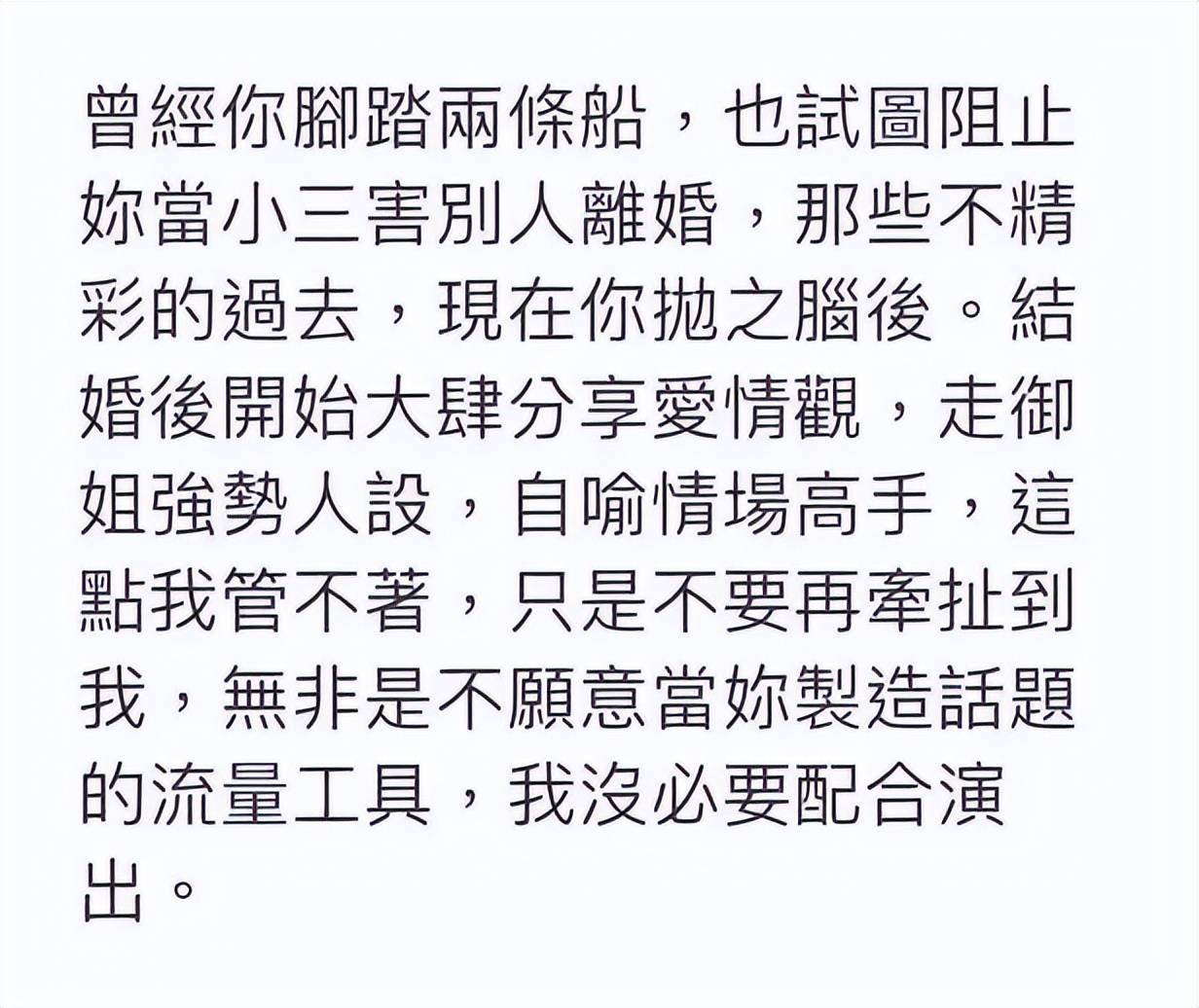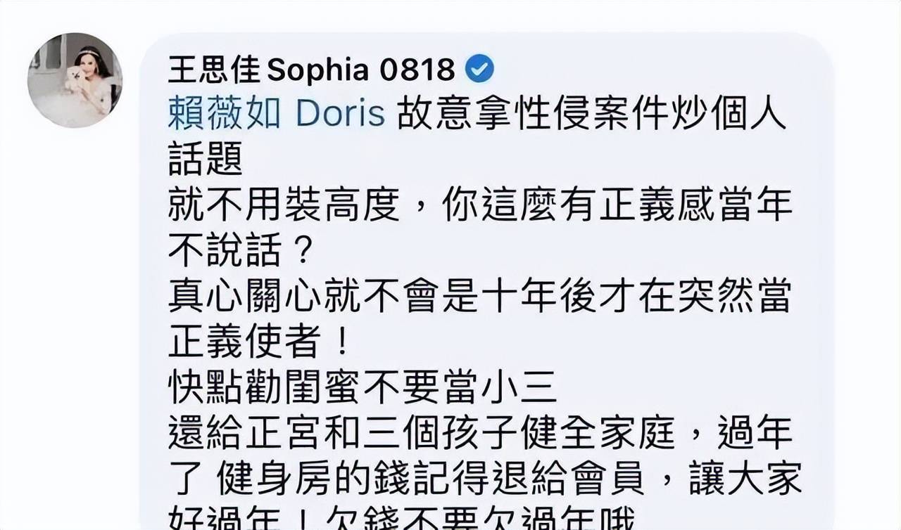 赖薇如则立马隔空“反击”,发小作文澄清自己,顺便还反手“举报”王思佳脚踏两船、当小三。