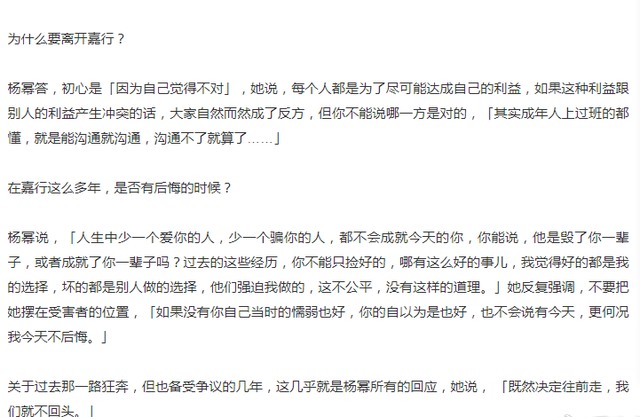 原标题:杨幂回应离开嘉行的原因:没有谁对谁错,上过班的都懂