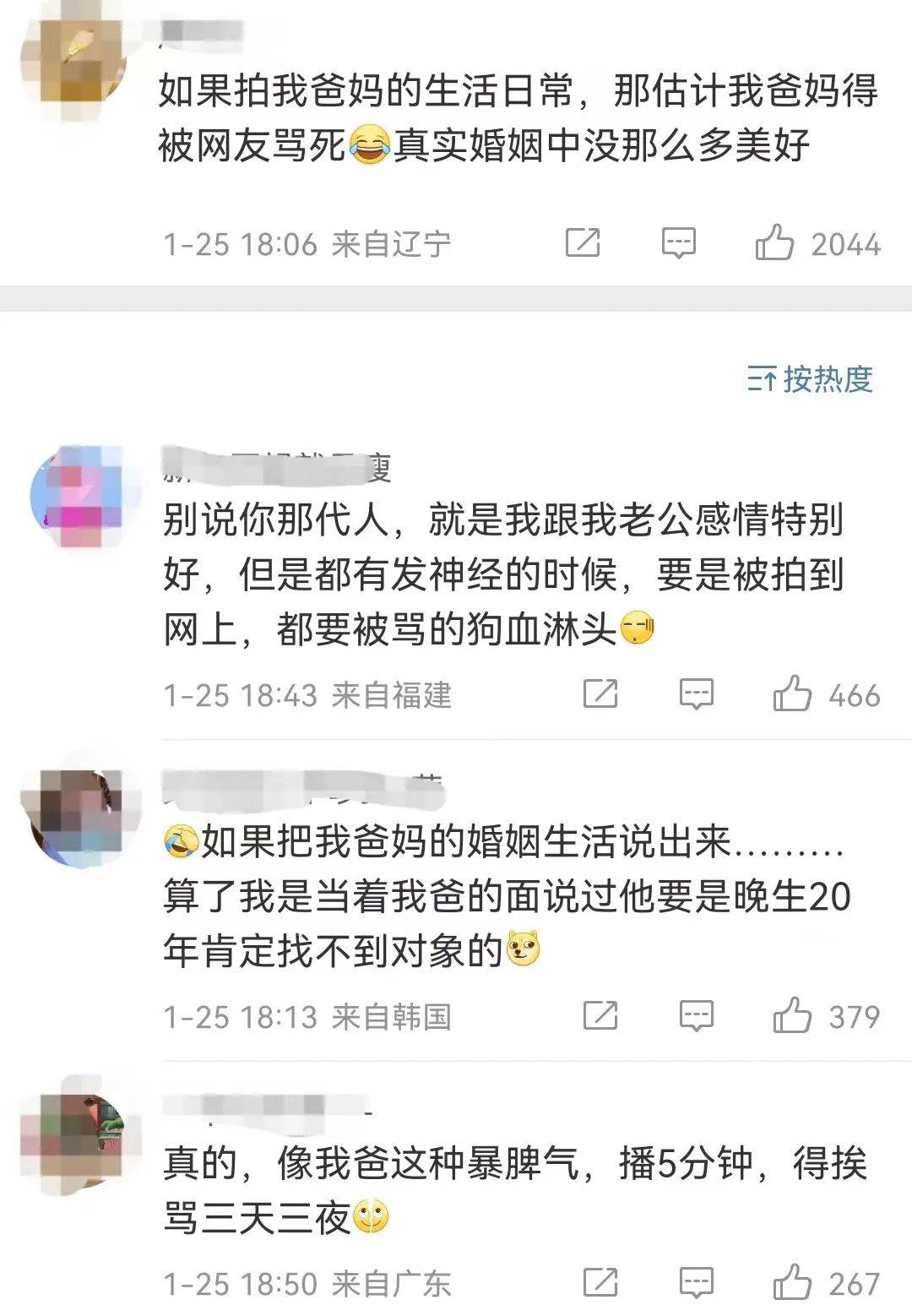 另外还有网友拿自己爸妈举例,觉得如果他们的日常生活拿到综艺上来看,肯定要被骂得狗血淋头。